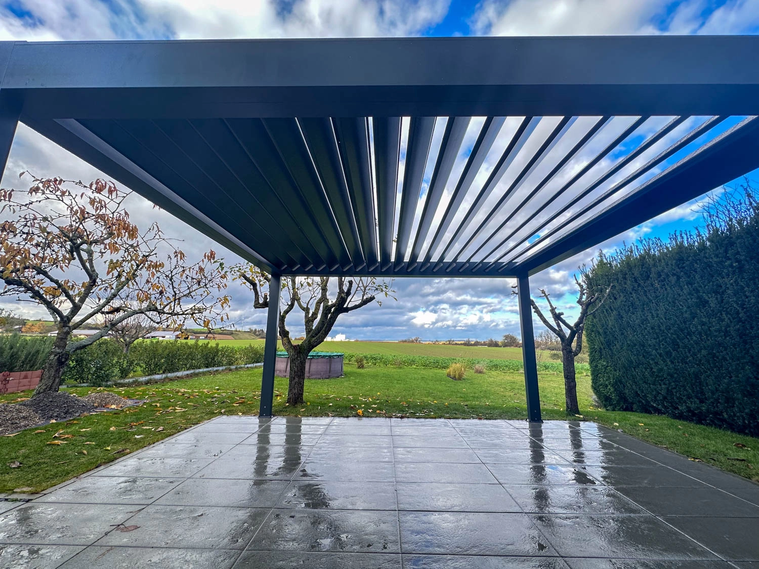 Unsere Lamellendächer sind wetterfest und halten Regen, Wind und sogar Schnee stand – ideal für den ganzjährigen Einsatz.